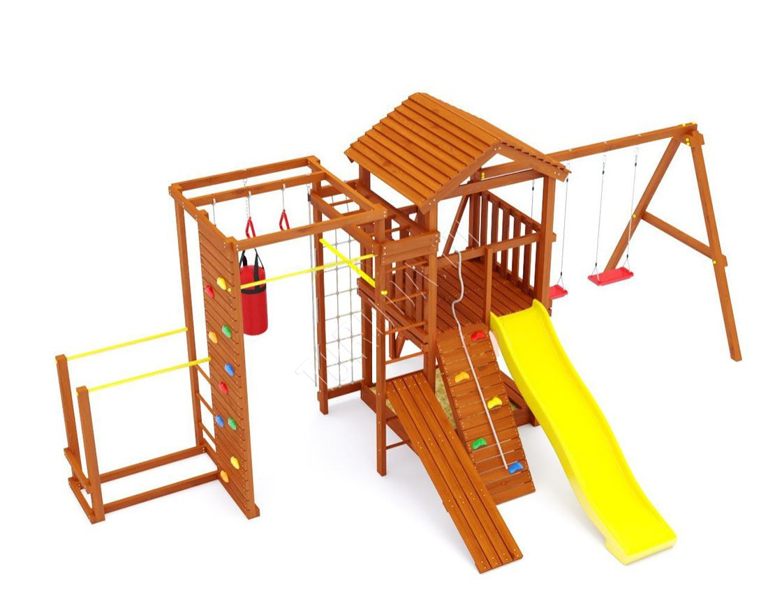 В основе натуральный материал – клееный брус 75х75 мм, изготовлена из безопасных материалов. Конструкция и элементы качельных подвесов разработаны и произведены согласно ГОСТ.