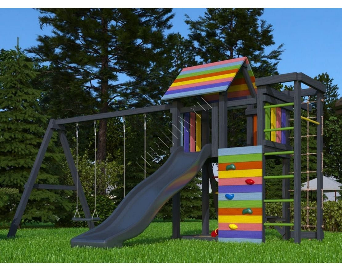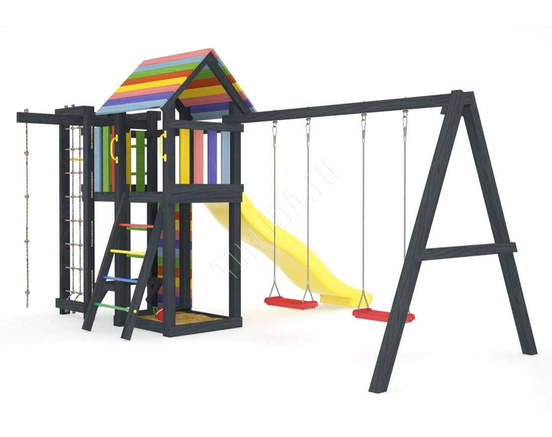 Детская площадка обладает довольно широким функционалом, предназначена для дачи, коттеджа.