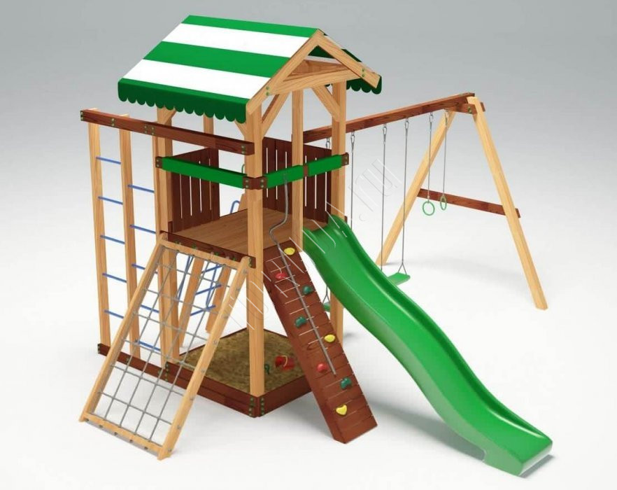 Площадка Парус 4 обладает довольно широким функционалом (который по желанию можно легко расширить). Детская площадка предназначена для дачи, коттеджа.